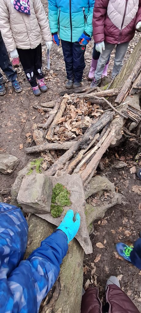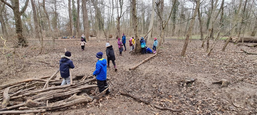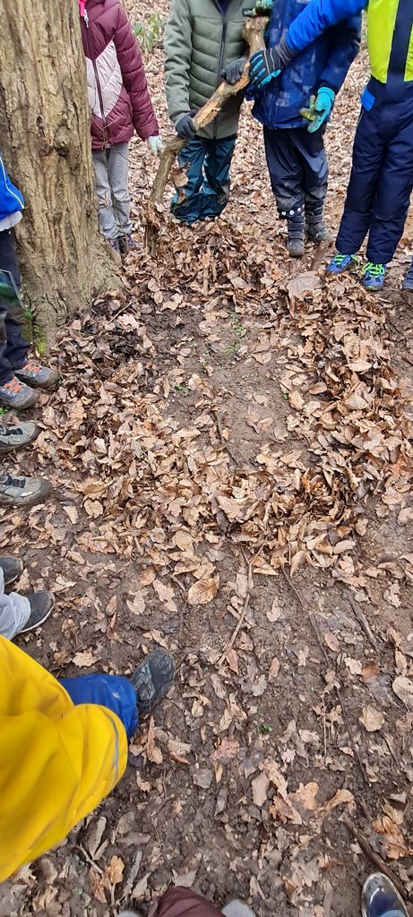 Wie immer trafen wir uns mit Frau Becker, unserer Waldpädagogin, im Wald am Ende der Vokkenaustraße. Dieses Mal bei trockenem, dafür aber sehr kaltem Wetter. ☺ Aber alle Kinder waren der Witterung entsprechend warm angezogen. An dieser Stelle einen herzlichen Dank an die Eltern.