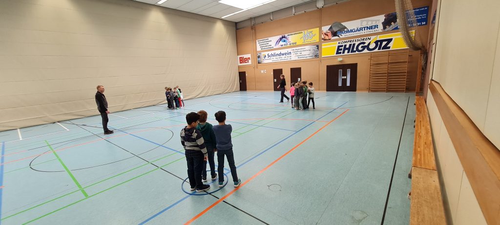 Nachdem der Start aufgrund des Wetters verschoben werden musste, fand der 1. Termin sicherheitshalber in der Turnhalle statt.
