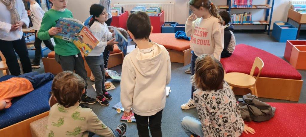Am Donnerstag, 27.4. machte sich die Klasse 2a auf in die Waldstadtbücherei. Passend zu unserem aktuellen Thema Buchpräsentation sollten die Schüler verschiedene Buchkategorien kennenlernen sowie eine Möglichkeit erhalten, Bücher und andere Medien kostenfrei auszuleihen.
