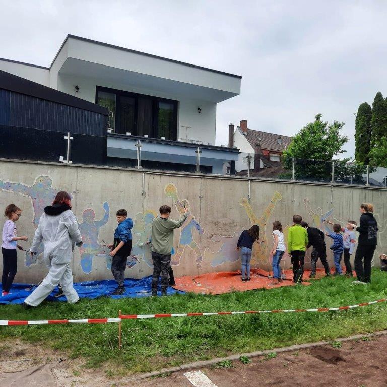 Wer hätte gedacht, dass in 3 Tagen aus einer grauen Mauer eine bunte, lebendige und zur Grundschule Hagsfeld passende Mauer entstehen kann.