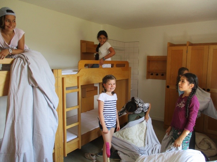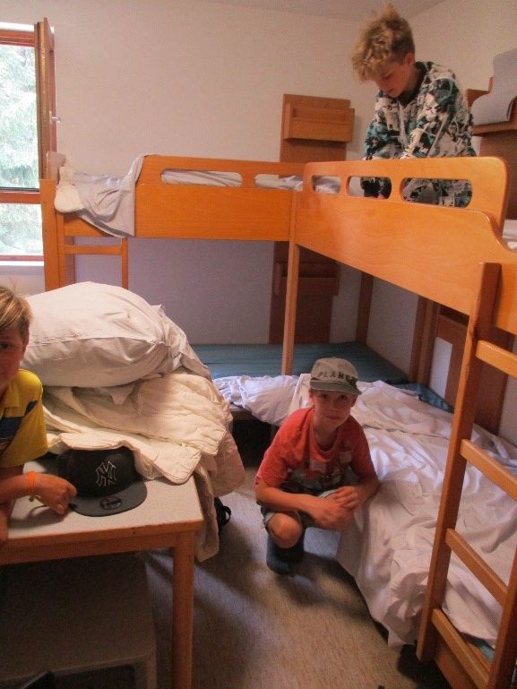 Frau Wolf kündigte die Zimmerpolizei an. Jeden Tag konnte man bis zu 3 Punkten für ein sauberes und ordentliches Zimmer erhalten. Am Ende der Klassenfahrt lagen die Tigerchen mit 9 Punkten knapp vorne. Sie bekamen einen Preis und durften sich ein Spiel im Sportunterricht aussuchen.