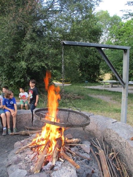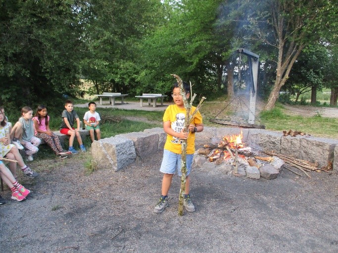 Am Montag haben wir im Landschulheim ein Feuer gemacht. Wir sind alle in einem großen Kreis um das Lagerfeuer herumgesessen. Dann haben wir uns gegenseitig Witze erzählt. Anschließend hat Frau Wolf uns noch eine Geschichte erzählt. Währenddessen haben wir ein paar Chips gegessen. Zum Schluss haben wir noch Lieder gesungen.