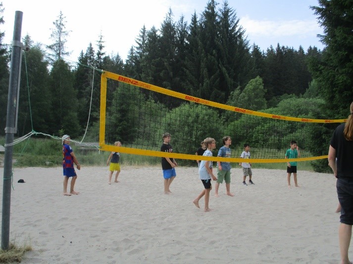 Bei der Jugendherberge gab es ein Volleyballfeld. Die Mädchen haben oft gegen die Jungen gespielt. Oft haben wir aber mehr diskutiert als gespielt! 😊 Wenn wir dann mal gespielt haben, haben meistens die Jungen gewonnen.