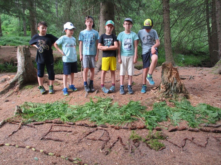 Am Montag Nachmittag sind wir in den Wald gegangen. Der Weg zum Wald war kurz, es gab viele große Wurzeln auf dem Boden. Wir bekamen die Aufgabe, Mandalas zu machen. Unsere Mandalas waren aber nicht stinknormal. Sie wurden aus Pflanzen gebastelt.