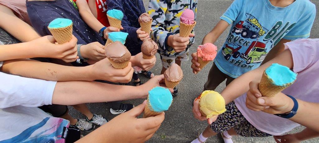 So überraschte zunächst der Eiswagen die Schüler und dank dem Förderverein wurde jedem Kind eine leckere Kugel Eis spendiert. Zudem wurden neue Spielgeräte für die großen Pausen mit großer Freude ausprobiert.