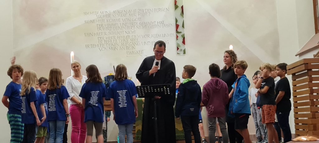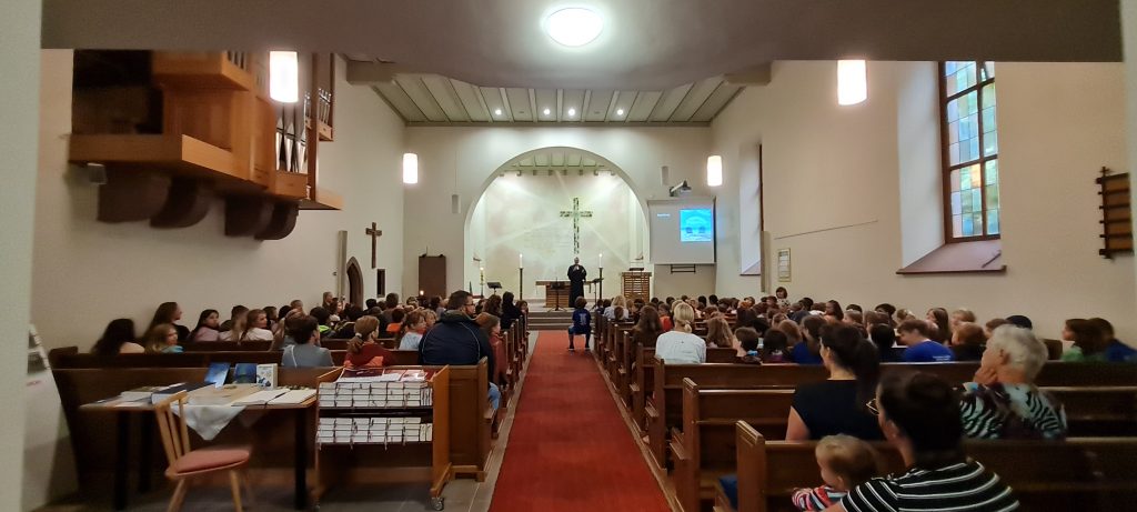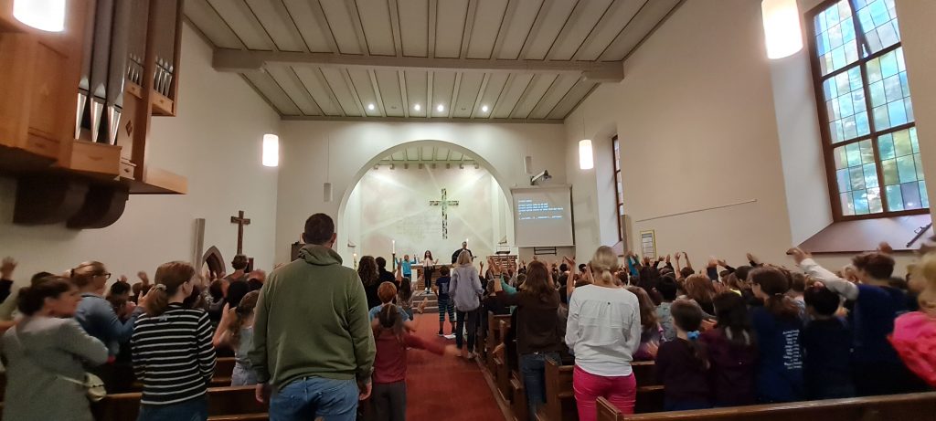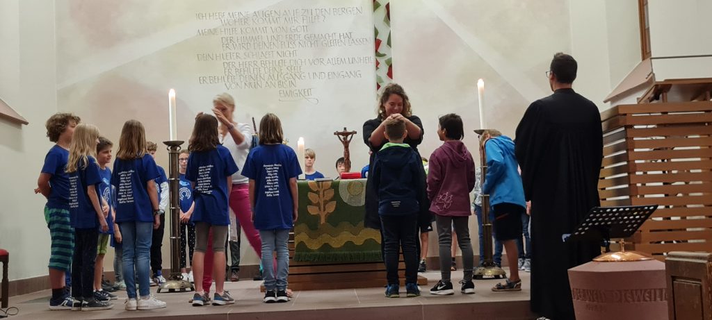 Am Mittwochmorgen feierten wir zunächst um 9.00 Uhr einen Abschlussgottesdienst in der Laurentiuskirche, in dem es, ähnlich wie bei der Abschiedsfeier, um Mut ging und die Viertklässler gesegnet wurden.