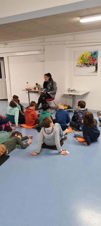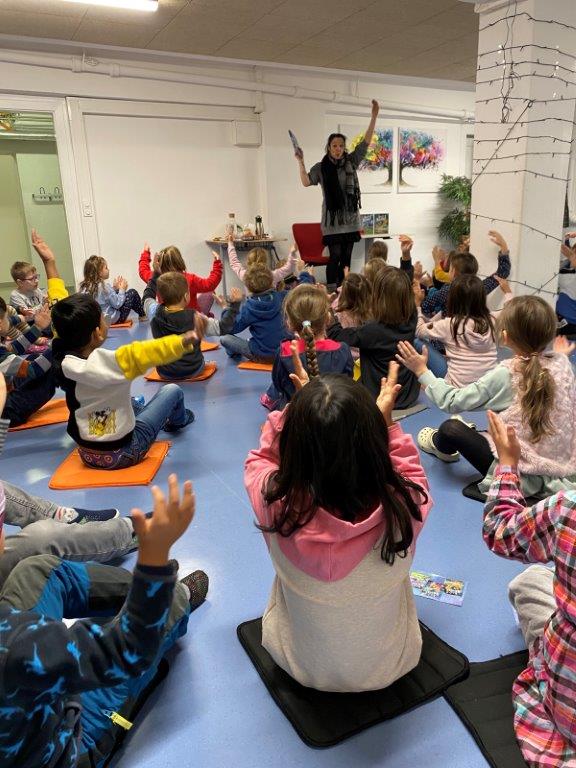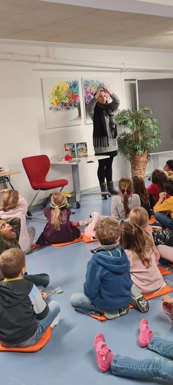 Den Stufen 3+4 las sie aus dem Buch Shaiko vor, in dem es um die Freundschaft zwischen Mensch und Tier, in diesem Fall einem Hai geht. Sehr anschaulich und bildhaft werden die Themen Freundschaft, Umweltschutz und Werteerziehung in dem Buch angesprochen.