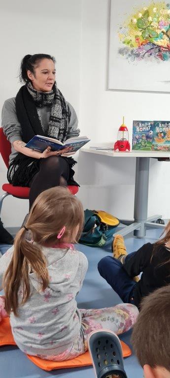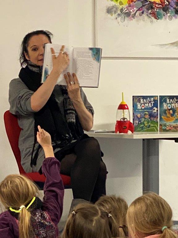 Die Lesungen waren sehr kurzweilig und die Kinder wurden immer wieder integriert, beispielsweise beim Raketenstart. Es blieb aber auch noch Zeit für Fragen an die Autorin und so erfuhren die neugierigen Zuhörer wie lange es dauert ein Buch zu schreiben oder wie Frau Glanzner generell auf ihre Ideen kommt.