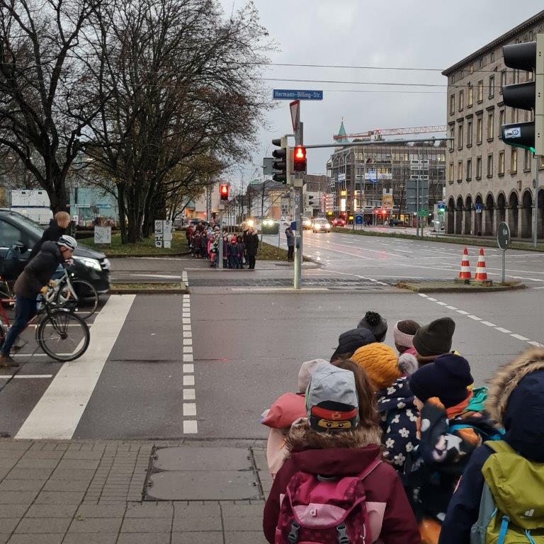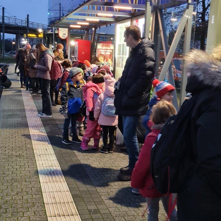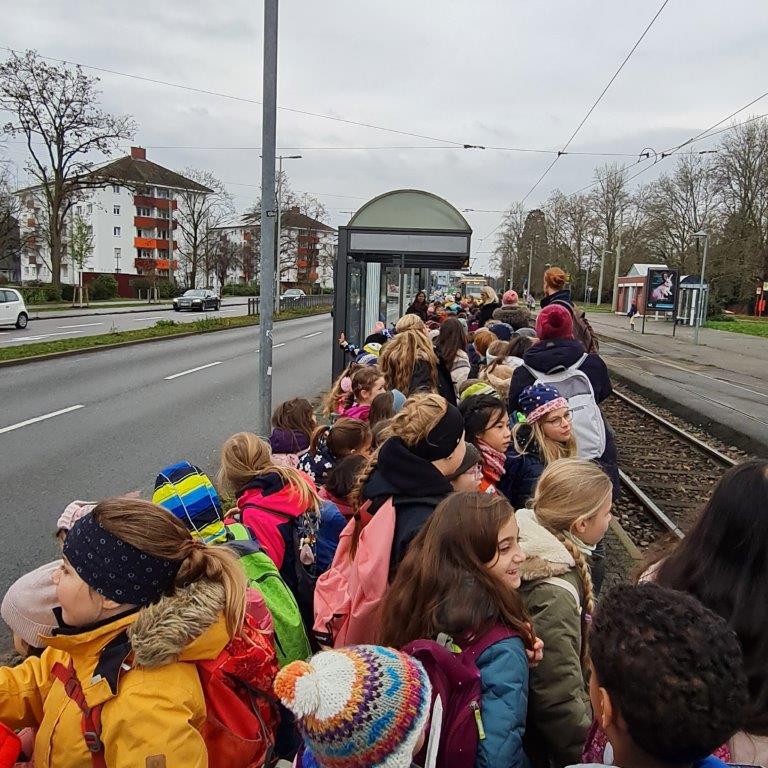 Aufgrund des Protestzugs konnte die Bahn nicht anfahren und alle 8 Klassen fuhren in einer Bahn zurück zur Schule.