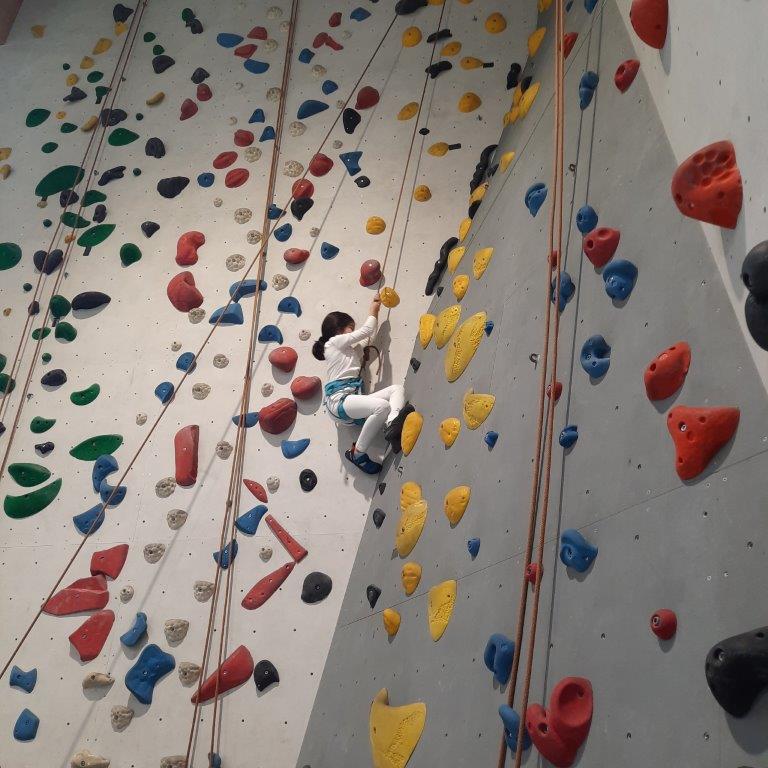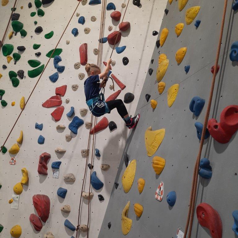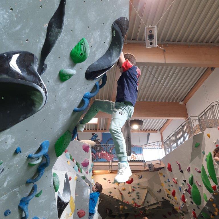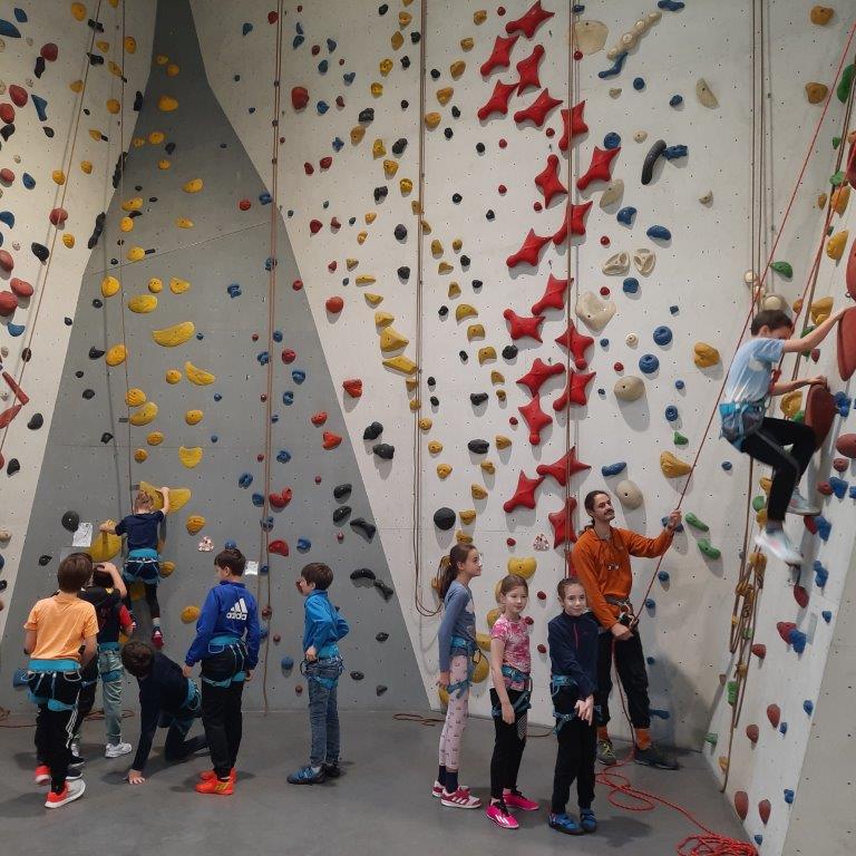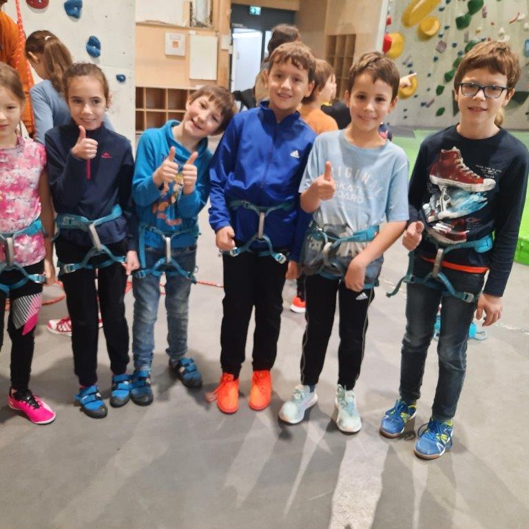 Am Mittwoch, den 13. Dezember 2023 machte sich die Klasse 3b der Grundschule Hagsfeld auf zum Kletter- und Boulderzentrum Karlsruhe, um dort im wahrsten Sinne des Wortes über sich hinauszuwachsen. Nach einer kurzen Einweisung durch zwei Trainer durften die Kinder gesichert mit einem Klettergurt eine sehr hohe Wand besteigen. Dabei fiel auf, dass alle Schülerinnen und Schüler mit Elan und Wissbegier dabei waren und sich immer neue Ziele setzten, die sie bis zum Ende des Vormittags alle erreichten. Im Boulderbereich durften die Kinder nach geschafftem Aufstieg auf einer Aussichtsplattform verweilen und auf einem dort platzierten Sofa verschnaufen. Auf dem Rückweg zur Schule machten wir noch Halt am nahegelegenen Spiel- und Kletterplatz. Trotz heftigen Regenschauern kehrten alle Kletterbegeisterten am Ende des Vormittags fröhlich und mit neu gewonnenem Selbstwertgefühl zurück ins Klassenzimmer.