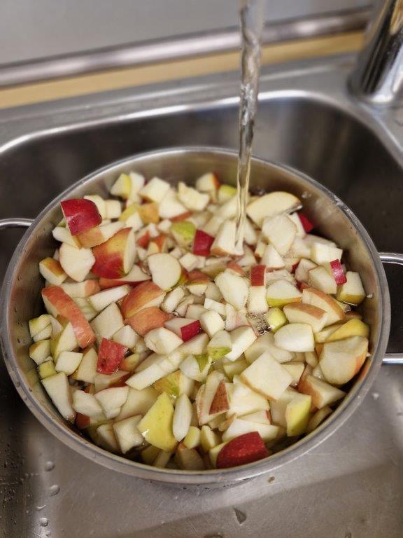 Passend zur Jahreszeit und zum Buchstaben A, den die Seepferdchen der Klasse 1a gerade lernen, haben wir heute den letzten Tag zusamm mit unserer Praktikantin Frau Seiler genutzt, um Apfelmus zuzubereiten.