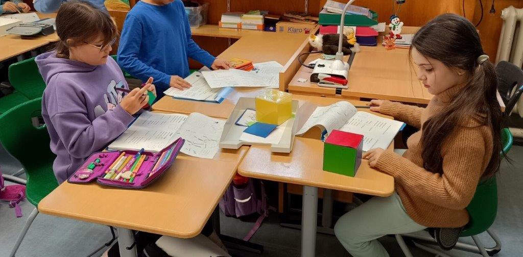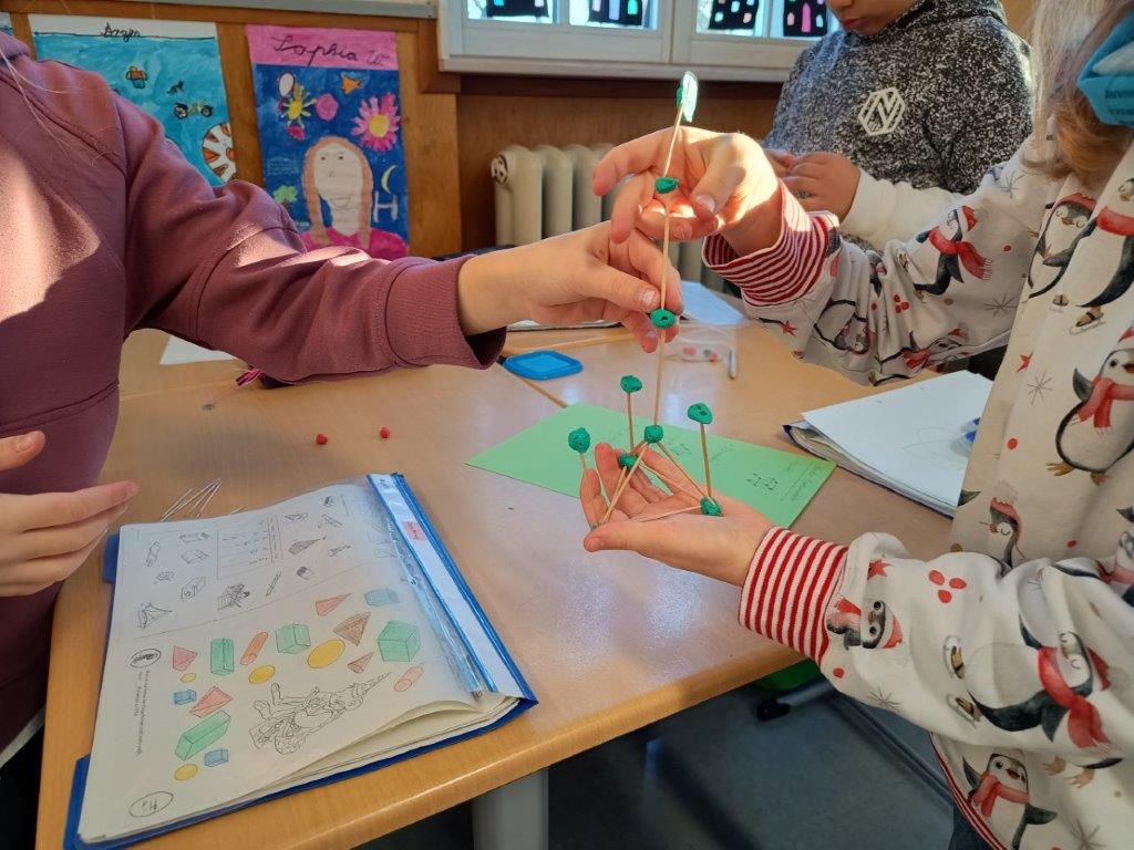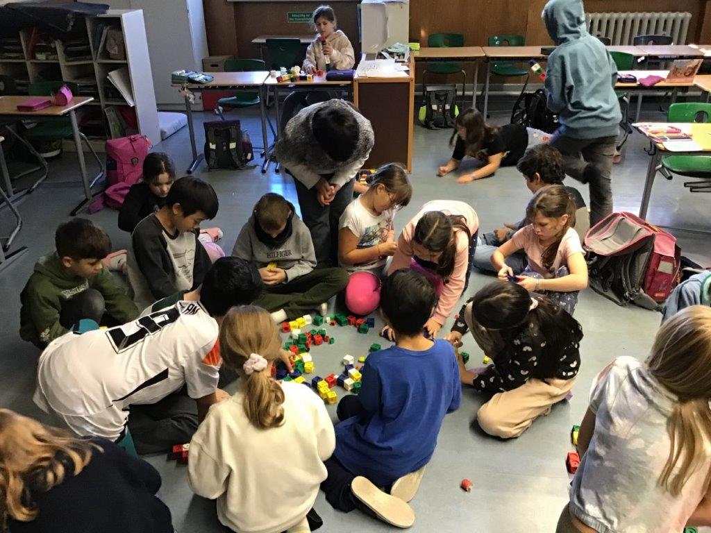 Im Matheunterricht arbeiten wir immer wieder in Gruppen und dürfen dann ausprobieren, bauen und untersuchen. So haben wir die Zahlen bis 1000, wichtige Gewichtsmaße und geometrische Körper kennengelernt. Bei Forscheraufgaben ist es besonders gut, wenn wir uns helfen, die Lösung zu finden.