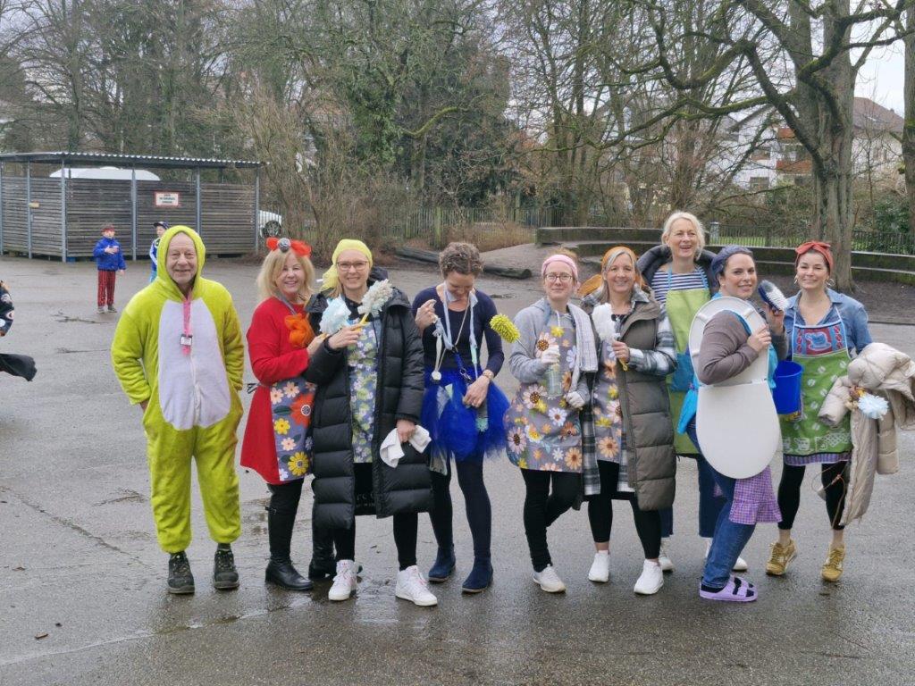 Am Freitag konnten die Kinder verkleidet kommen wie sie wollten. Nur Masken, Schwerter oder ähnliches waren verboten. Das Team der Grundschule Hagsfeld hatte sich für diesen Tag das gemeinsame Motto „Frühjahrsputz“ überlegt und dementsprechend kamen alle verkleidet, zur großen Freude der Kinder.