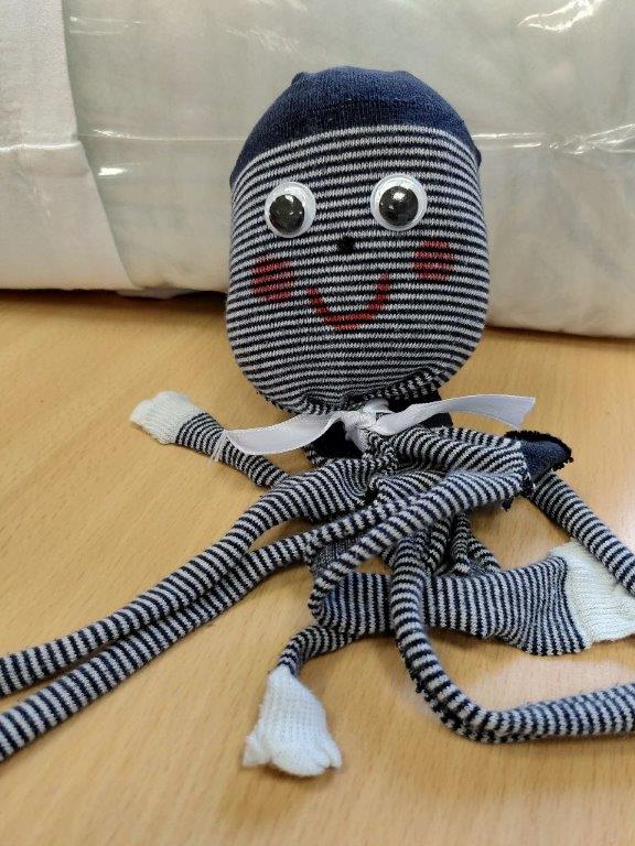 Im Laufe der Woche setzten wir uns in vielerlei Hinsicht mit Nachhaltigkeit auseinander: Wir schöpften neues Papier aus alten Zeitungen, wir bastelten Obst und Gemüse aus verschiedenen Materialien wie gebrauchtem Papier und Knete nach, wir bedruckten Samentütchen, wir bastelten „Socken-Kraken“ aus alten Socken und ließen uns ein Buch über einen nachhaltigen Umgang mit Kleidung vorlesen, dazu bearbeiteten wir ein kleines Heftchen. Wir haben in dieser Woche viel erlebt und viel gelernt und einen anderen Blick auf unsere Welt und, wie wir mit ihr umgehen sollten, entwickeln dürfen.“