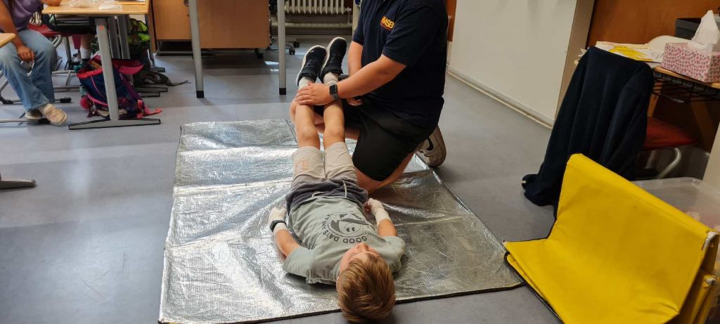 Am 8.7.2025 kam Kilian in die 2b und hat mit uns einen Erste-Hilfe-Kurs gemacht. Bei dem Kurs hat er uns gezeigt, wie man andere Leute verarztet. Wir durften einen Verband anlegen und er hat uns die Schocklage gezeigt. Es war spannend und toll.