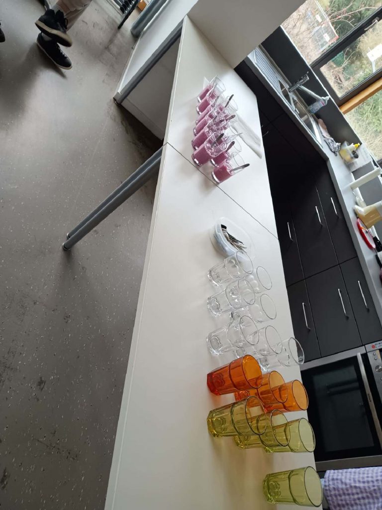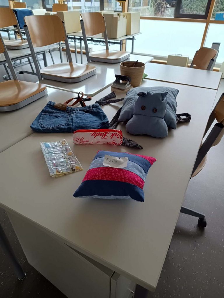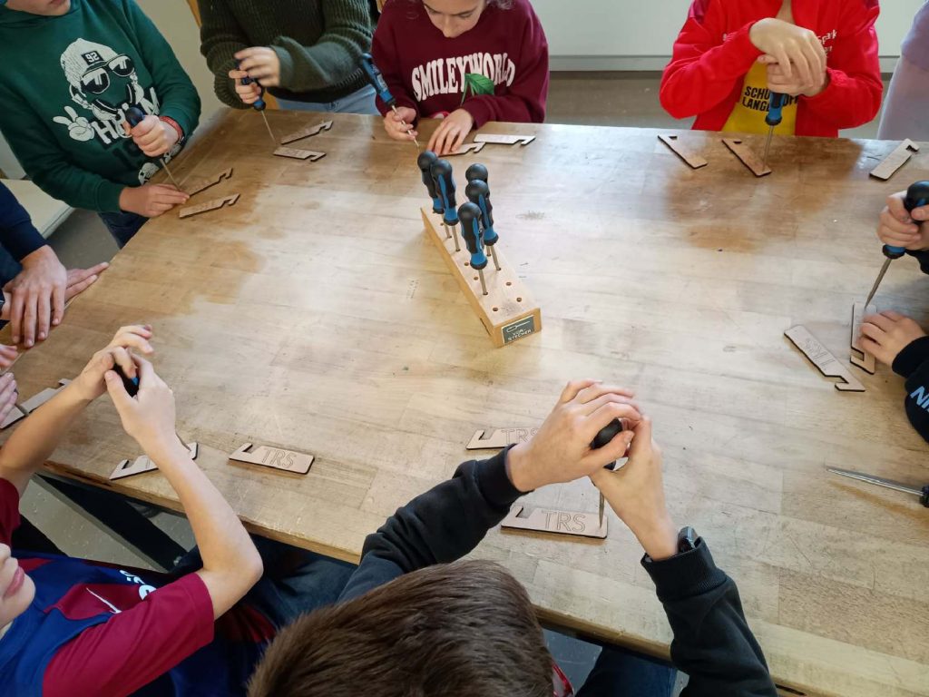 Im Fach AES (Alltagskultur, Ernährung, Soziales) erwartete uns gleich doppelter Genuss: Wir durften selbstgemachte Smoothies probieren und die entstandenen Näharbeiten bewundern. Im Technikraum wurden wir sogar selbst aktiv und stellten ein eigenes Werkstück her – ein tolles Erlebnis!